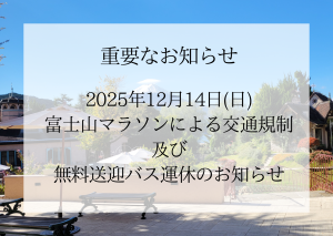 いつも河口湖音楽と森の美術館の庭園をご覧頂き誠にありがとうございます。当館敷地内にありますローズガーデンは12月1日より冬季閉鎖となります。お客様には大変ご迷惑をお掛けいたしますが、ご理解の程よろしくお願い申し上げます。2026年4月1日より再オープン予定となります。