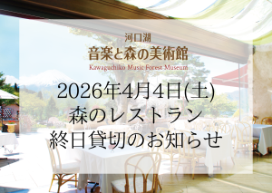 3月28日(土)より、新企画「美術館浴」がスタートいたします。自然・音楽・アートに包まれながら、五感をひらき、心を整えるひととき。当館ならではの特別な体験をお届けいたします。それに伴い、演奏スケジュールの時間が変更となります。ご来館をご予定のお客様は、事前に最新のタイムスケジュールをご確認くださいますようお願い申し上げます。新たな春のはじまりを、ぜひ美術館でお過ごしください。