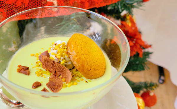 河口湖音楽と森の美術館カフェでは期間限定でピスタチオのブランマンジェを販売致します。なめらかで濃厚なブランマンジェをぜひお試しください♪
